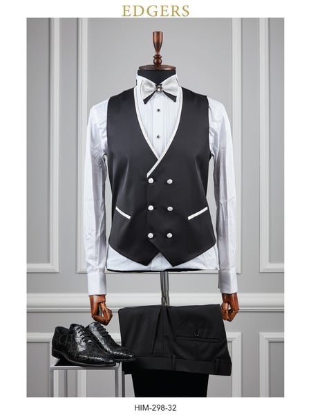 کت شلوار دبل برست ادگرس – سفید مشکی