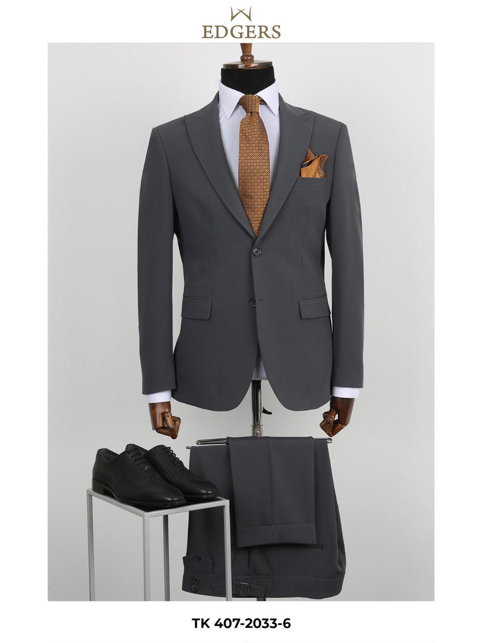 کت و شلوار یقه انگلیسی ادگرس – طوسی