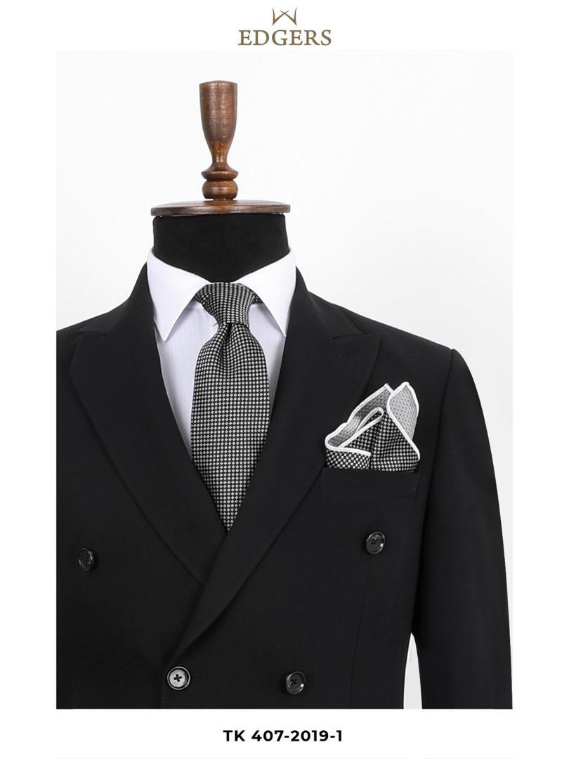 کت شلوار دبل برست ادگرس – سفید مشکی