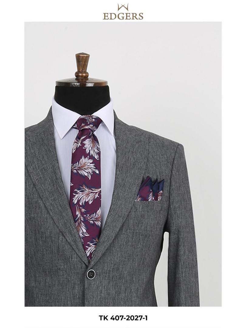 کت و شلوار یقه انگلیسی ادگرس - طوسی
