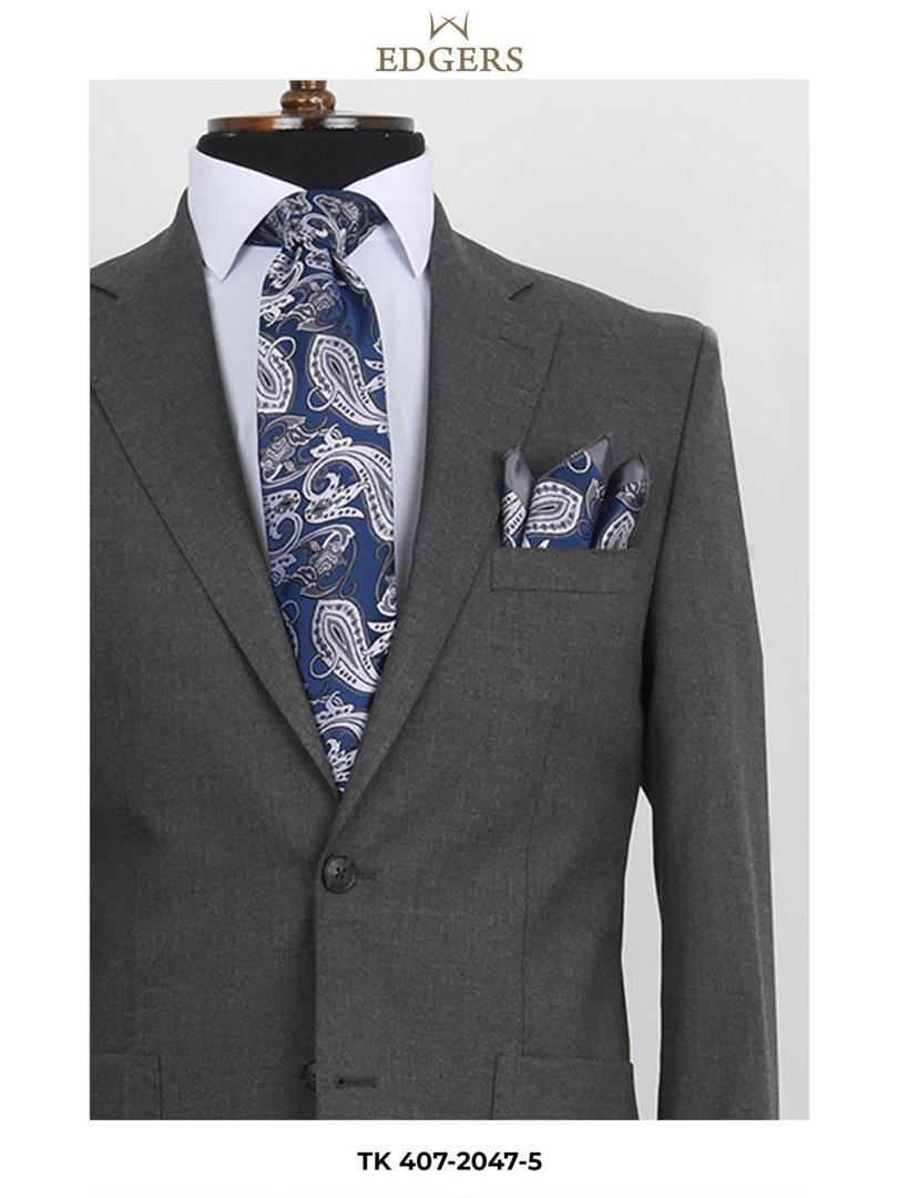 کت و شلوار یقه انگلیسی ادگرس – طوسی
